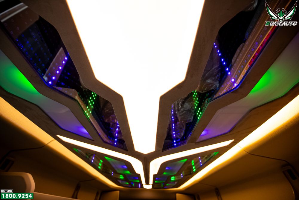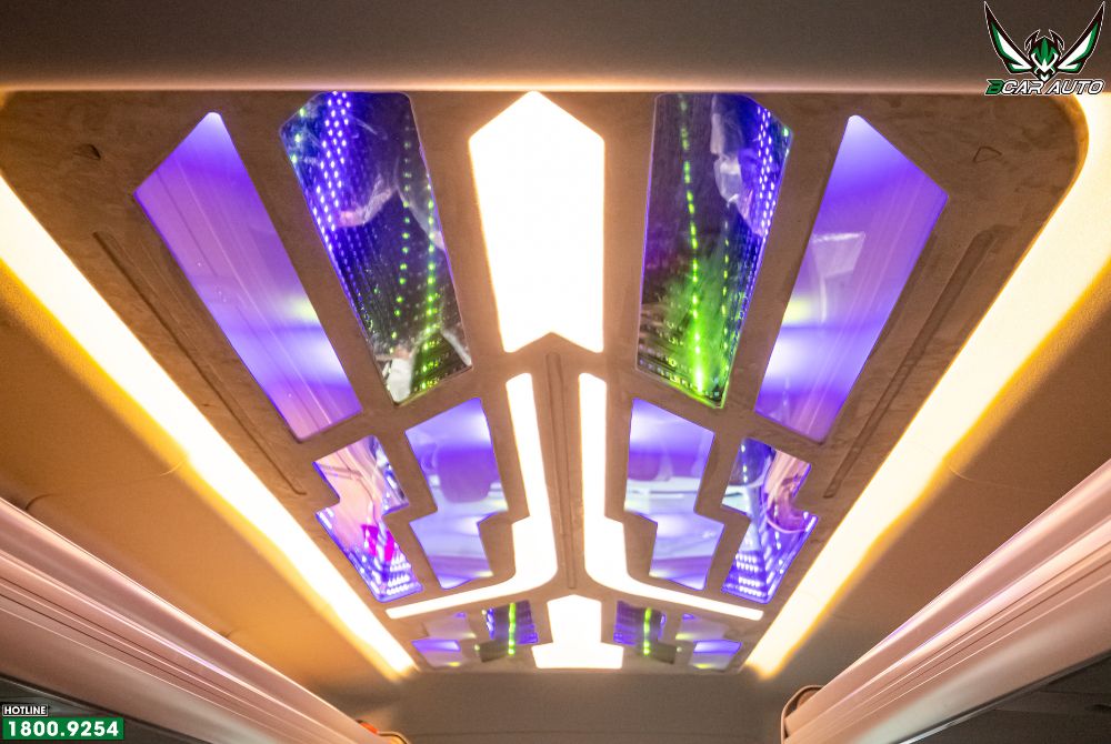 - Thiết kế “Phi thuyền” độc đáo: Hệ thống đèn được tạo hình khối nổi mạnh mẽ, mang lại cảm giác công nghệ cao. Các dải LED chạy dọc trần xe tạo chiều sâu ấn tượng cho khoang hành khách.