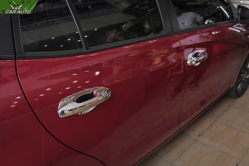 Nhìn tổng thể, việc lên bộ option này vừa bảo vệ vùng sơn tay nắm cửa vừa tăng tính thẩm mỹ cho tổng thể chiếc Vios.