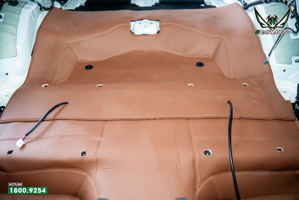 - Trải Thảm Da Và Cố Định: Tấm da lớn được trải lên sàn, căn chỉnh các vị trí logo thêu sao cho cân đối. Sau đó, kỹ thuật viên sử dụng các dụng cụ chuyên dụng để cố định mép thảm vào dưới các ốp nhựa của xe.